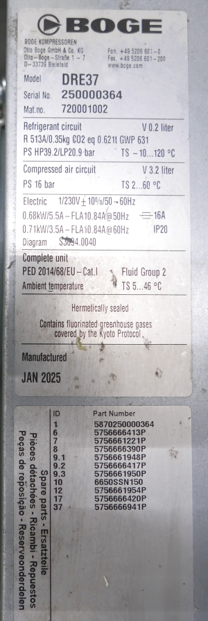 Type:DRE 37 Einbautrockner als Ersatzteil